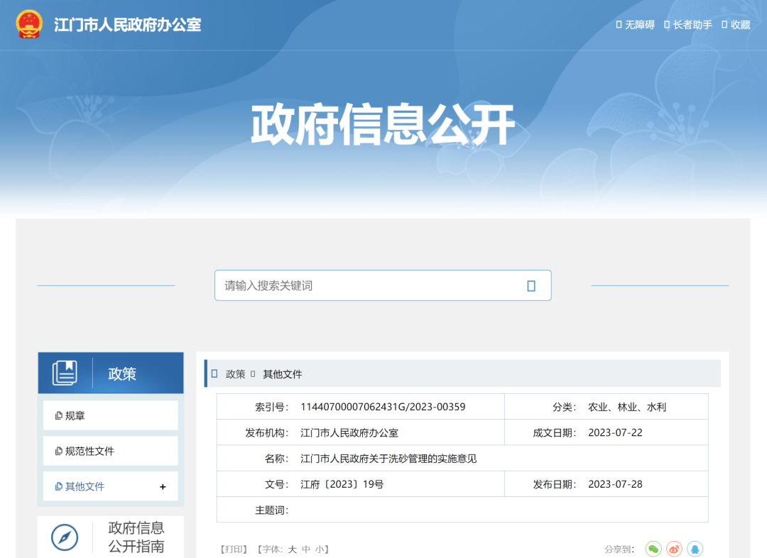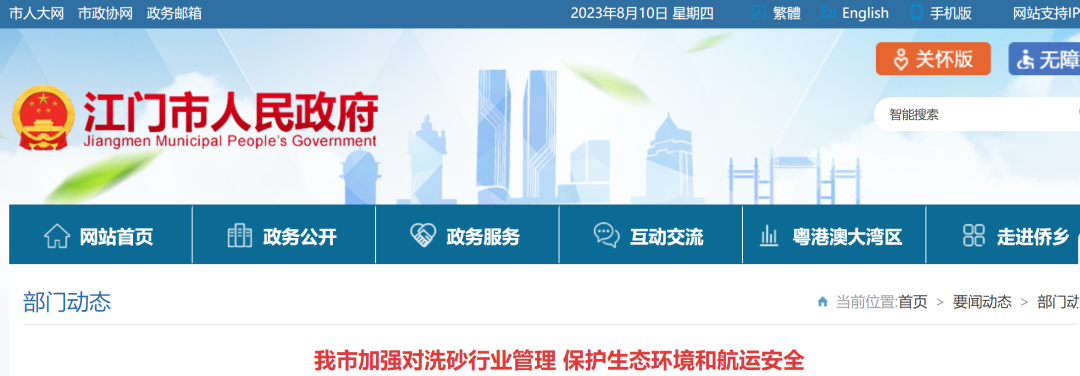 近日,廣東江門市發布了《江門市人民政府關于洗砂管理的實施意見》(以下簡稱《實施意見》),旨在加強對洗砂行業的管理,遏制非法洗砂行為,促進綠色健康發展,保護生態環境和航運安全。