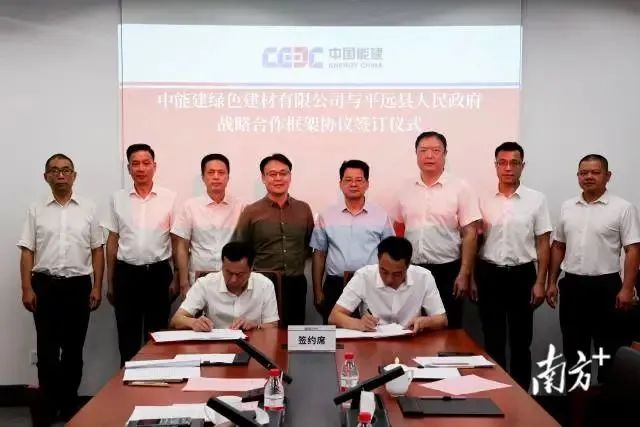 2023年8月3日至4日,廣東省平遠縣政府與中能建綠色建材有限公司簽訂合作協議,雙方將充分發揮各自優勢,全力打造“央地合作”新標桿,切實將優質資源優勢轉化為經濟發展優勢。雙方表示將在建筑砂石等礦產投資開發方面開展全面、深入合作。