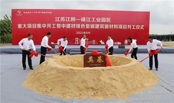 2023年8月14日上午,江蘇江陰-靖江工業(yè)園區(qū)重大項目集中開工暨中建材綠色低碳建筑新材料項目開工儀式在華東材料江蘇永益華元物流有限公司項目建設現場舉行。