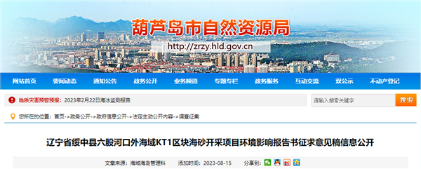 8月15日,遼寧省葫蘆島市自然資源局對2宗海砂開采項目環境影響報告書征求意見稿進行公示。據了解,這2宗海砂開采項目均位于葫蘆島市綏中縣六股河口外海域,出讓年限約2年,但生產規模與海砂儲量尚未公布。