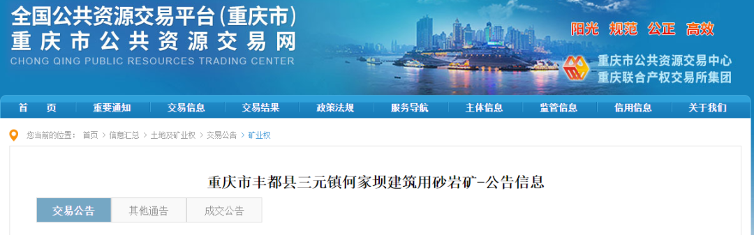 重慶市豐都縣三元鎮何家壩建筑用砂巖礦采礦權拍賣出讓公告