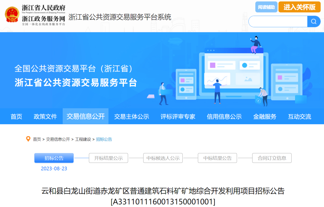云和縣白龍山街道赤龍礦區(qū)普通建筑石料礦礦地綜合開發(fā)利用項(xiàng)目工程招標(biāo)公告