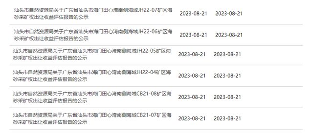 日前,廣東省汕頭市自然資源局對海門田心灣南側(cè)海域JH22-(07、06、05、04)及CB-(08、07)共6區(qū)塊海砂采礦權(quán)出讓收益評估報告進行公示。經(jīng)測算,這6宗海砂采礦權(quán)出讓收益共計370729.28萬元(超37億元),儲量近1.36億方,年開采規(guī)模合計5760萬方。