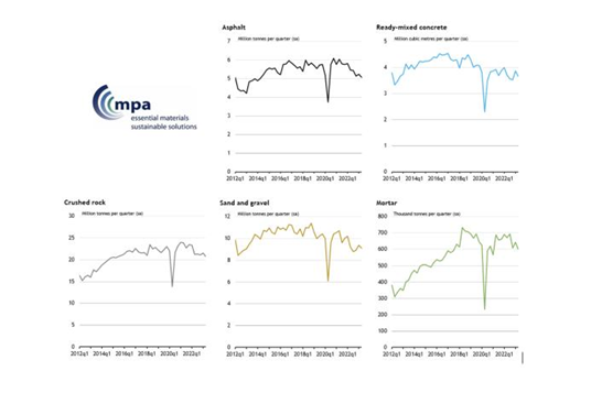 礦產(chǎn)品協(xié)會 (MPA) 的最新季度調(diào)查(涵蓋英國骨料、瀝青、預(yù)拌混凝土和砂漿)顯示2023年第二季度實際銷量下降。