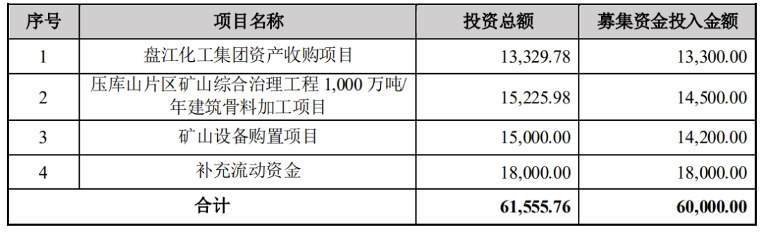 砂石等前景更好的領域,2022年,保利聯合化工控股集團股份有限公司發布《2021年度非公開發行A股股票預案》,根據《預案》顯示:本次非公開發行股票募集資金總額不超過60,000萬元,資金主要用于壓庫山片區礦山綜合治理工程1000萬噸/年建筑骨料加工項目。