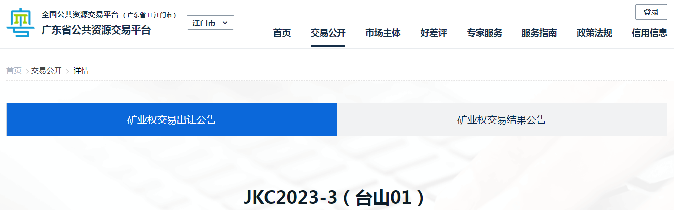 江門市JKC2023-3(臺山01)號采礦權網上掛牌出讓公告