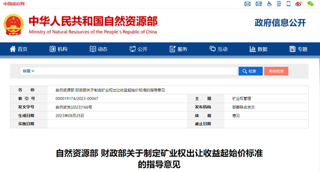 依據《財政部 自然資源部 稅務總局關于印發<礦業權出讓收益征收辦法>的通知》(財綜〔2023〕10號)有關規定,現就制定礦業權出讓收益起始價標準提出以下指導意見。
