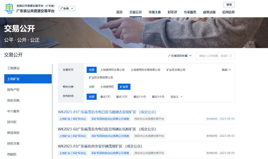 茂名市電白區馬踏鎮吉菜窯礦區:競得人為茂名市茂盛彩耀礦業有限公司,最終成交價為13006.62萬元;茂名市電白區旦場鎮長坑嶺礦區:競得人為茂名市茂盛長鏗礦業有限公司,最終成交價為9755.96萬元;化州市寶圩鎮茂坡礦區:競得人為茂名市茂盛寶鼎礦業有限公司,最終成交價為4345.87萬元。