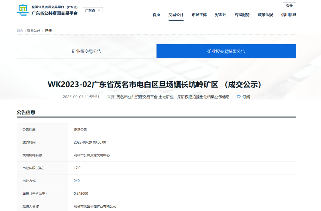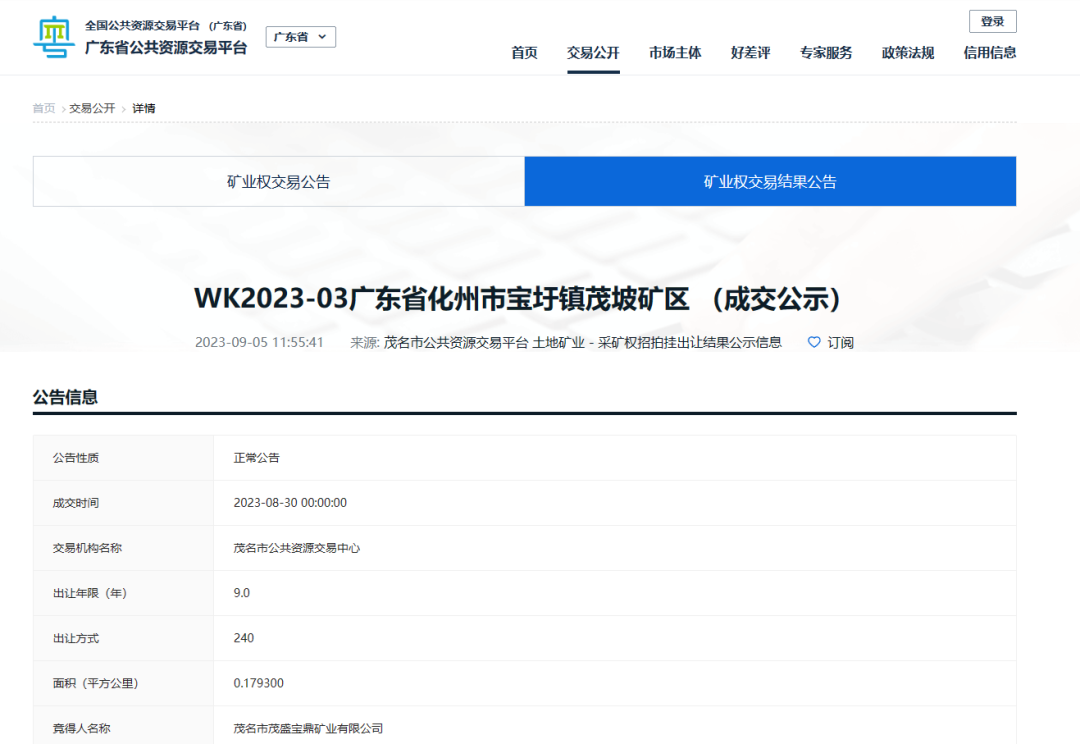 競得人:茂名市茂盛寶鼎礦業有限公司