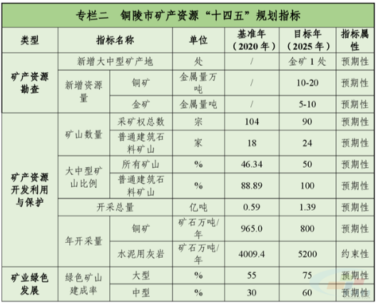 《銅陵市礦產資源規劃(2021-2025年)》顯示,“十四五”時期,銅陵市對