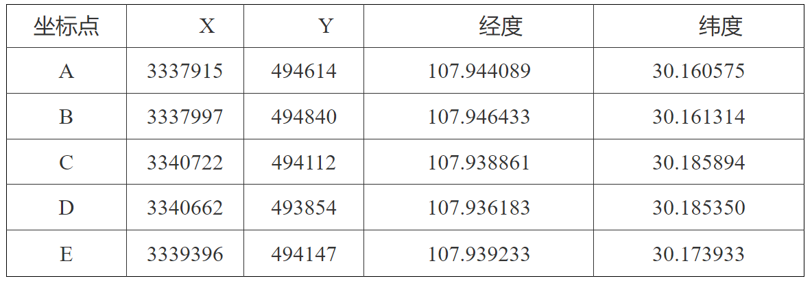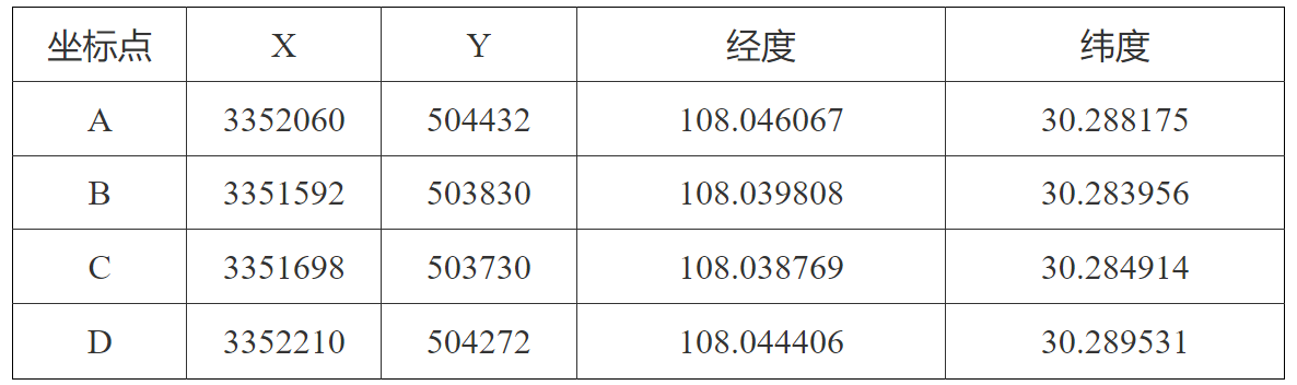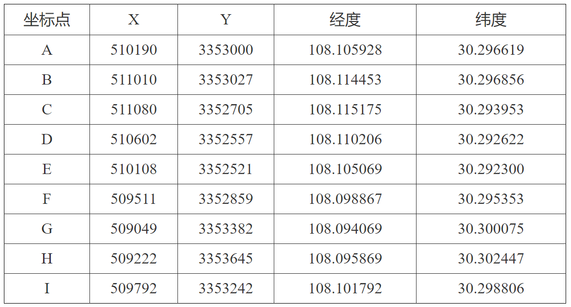 (9)具體作業范圍控制點坐標分別為: