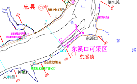 1.東溪口采砂區域,位于航道里程420.4-421.4km,長江河道右岸。