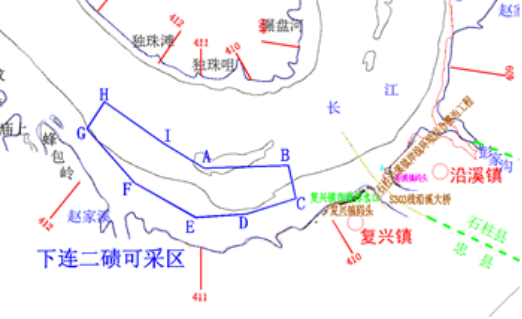 3.下連二磧采砂區域,位于航道里程410.2-412.5km,長江河道右岸、沿溪河口上游。