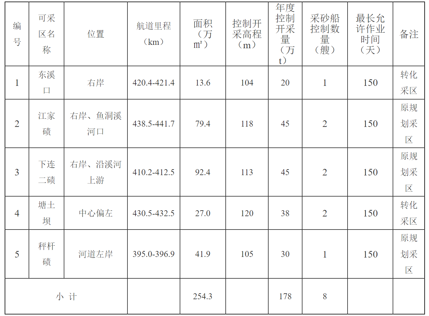 3.本次采砂實施方案有效期截止到2023年12月31日(全年最長允許作業時間不超過150天),有效期內,若采砂量達到148萬噸后,采砂實施方案自動失效。