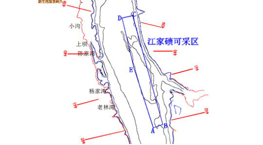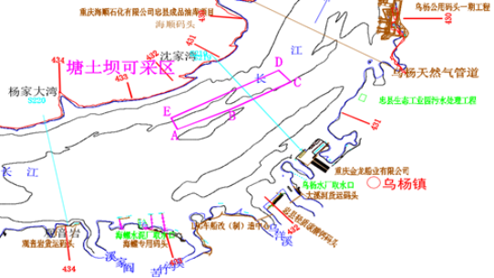 2.江家磧采砂區域,位于航道里程438.5-441.7km,長江河道右岸、魚洞溪河口。