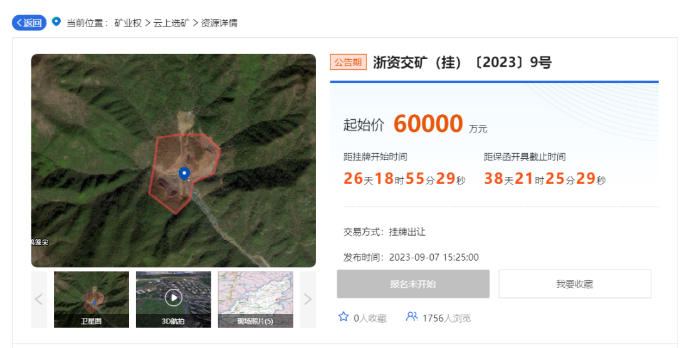 掛牌文件從互聯網上下載獲取,有意競買者可通過浙江省礦業權交易系統(https://www.zjzrzyjy.com/),選擇擬競買采礦權即可瀏覽、查閱和下載該采礦權相關資料。