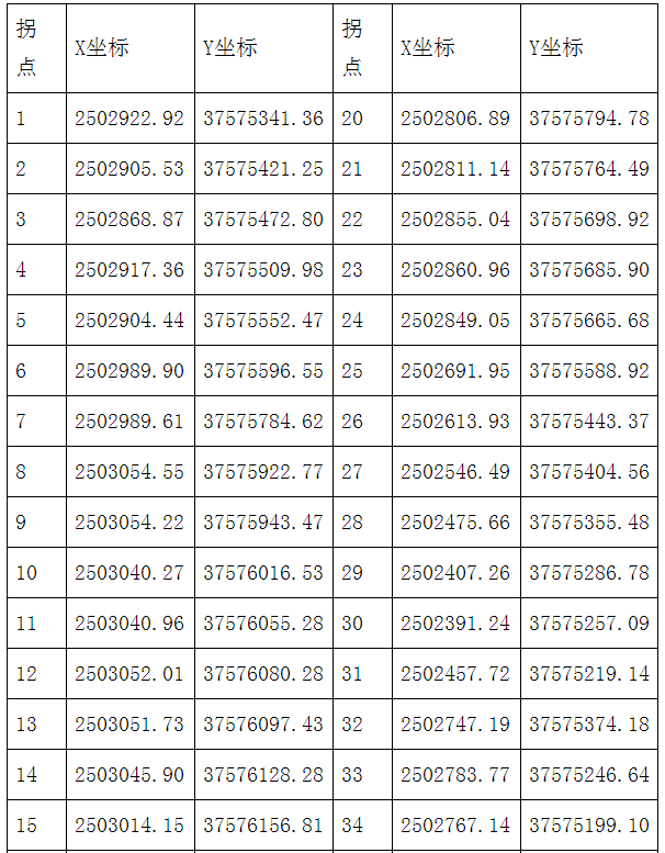 礦區面積:0.2146平方公里,礦區范圍拐點坐標如下(2000國家大地坐標系):