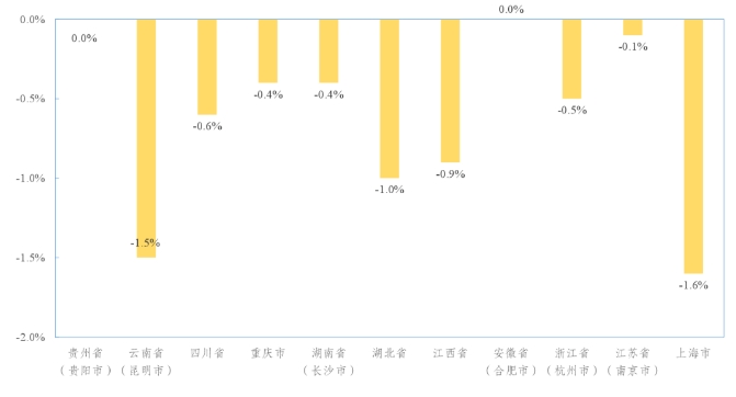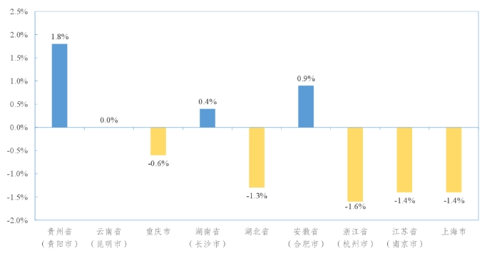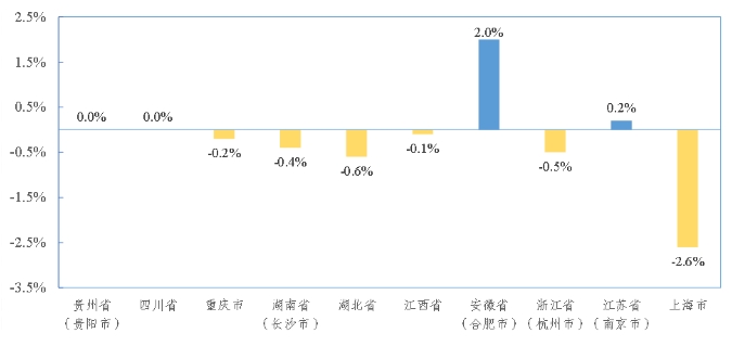 長江經(jīng)濟(jì)帶部分省(市)水泥價(jià)格環(huán)比增速