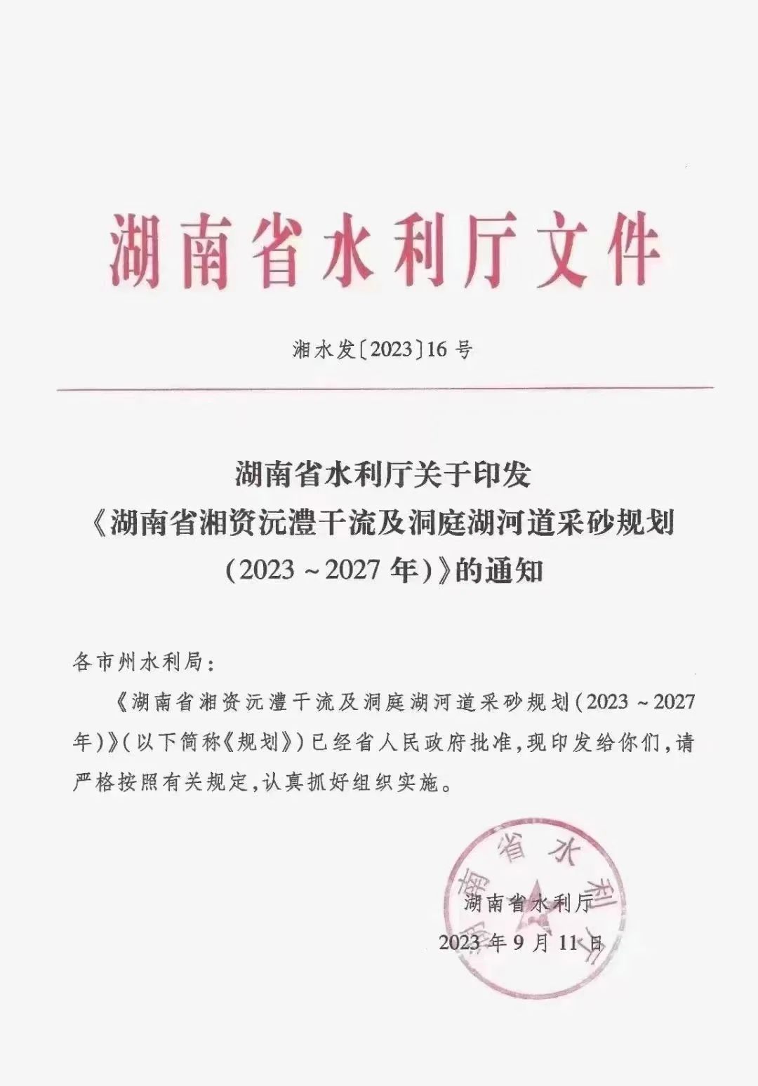 據湖南最新消息,湖南省水利廳印發通知,正式發布《湖南省湘資沅澧干流及洞庭湖河道