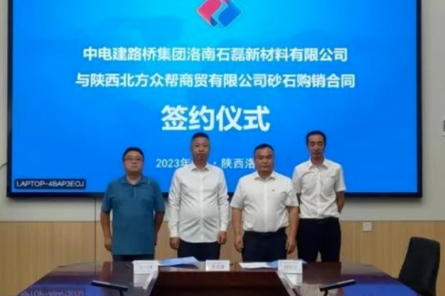 9月25日,電建路橋公司洛南石磊新材料有限公司與陜西北方眾幫商貿有限公司正式簽訂砂石購銷合同,標志著洛南項目進入全面投產運行階段。