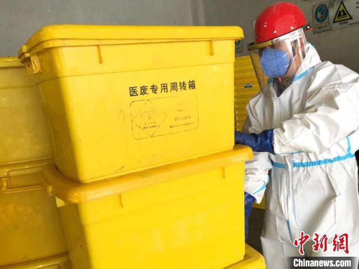 圖為工人搬運醫廢專用周轉箱。(資料圖)張婧 攝