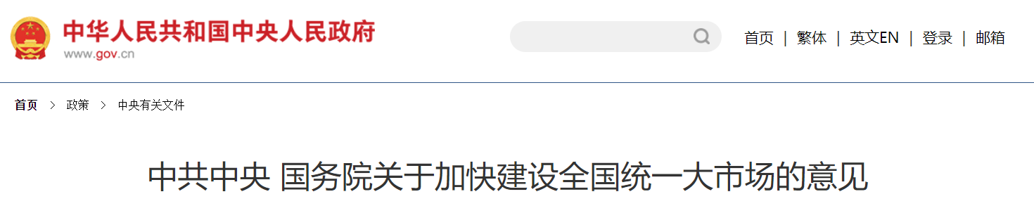 《中共中央國務院關于加快建設全國統一大市場的意見》第二十五條的規定: