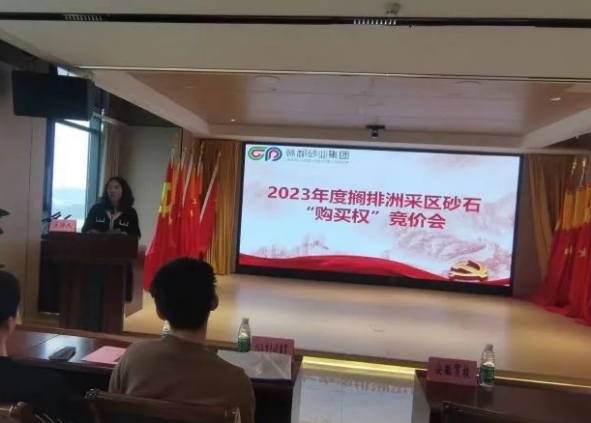 10月10日下午,2023年度贛鄱砂業集團擱排洲采區30萬噸砂石“購買權”競價會在集團會議室順利舉行。市采砂管理局領導及相關科室工作人員出席并全程監督本次活動,參與本次競價共有十家企業代表50余人。