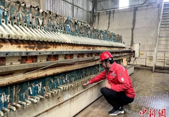 記者在現(xiàn)場(chǎng)看到,在兩個(gè)足球場(chǎng)大的生產(chǎn)車(chē)間里,就地新開(kāi)采的原料由機(jī)械裝進(jìn)給料倉(cāng)后,經(jīng)過(guò)