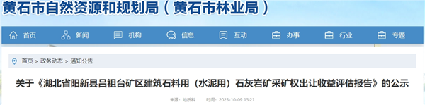 近日,湖北省黃石市自然資源和規劃局發布陽新縣呂祖臺礦區建筑石料用(水泥用)石灰巖礦采礦權出讓收益評估報告的公示。該礦累計查明資源量18829.7萬噸,其中建筑石料用石灰巖9523.7萬噸、建筑石料用白云巖1440.1萬噸、水泥用石灰巖7865.9萬噸。生產規模600萬噸/年(建筑石料用石灰巖、白云巖344.95萬噸/年,水泥用石灰巖255.05萬噸/年),服務年限29.3年,出讓收益評估值41032.65萬元。