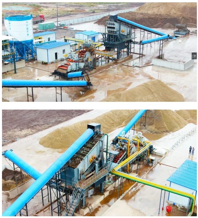生產線采用隆中重工自主研發(fā)制造的篩分設備,該設備加有噴淋裝置,篩掉貝殼、石頭等雜質,同時初步去泥;生產力大,性能穩(wěn)定。