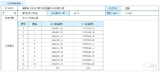 10月16日,湖南省自然資源廳發布公告,掛牌出讓湖南省婁底市冷水江市泉平礦區建筑石料用灰巖礦采礦權,擬出讓16.5年,起始價4600萬元。