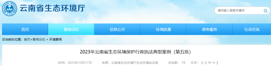近日,云南省生態環境局發布2023年云南省生態環境保護行政執法典型案例,其中3項涉及