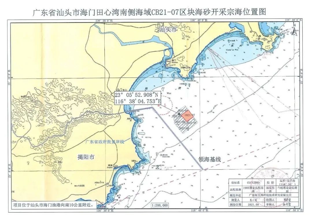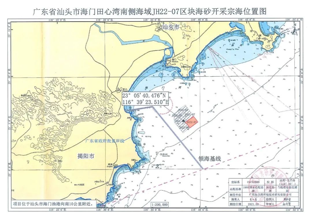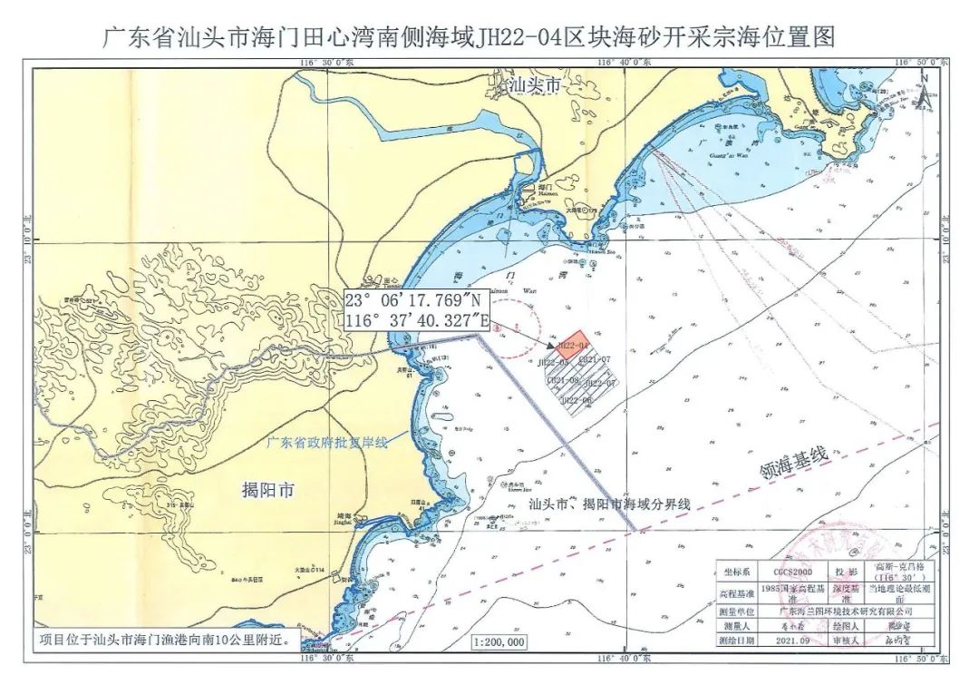 1.廣東省汕頭市海門田心灣南側海域JH22-04區塊海砂開采