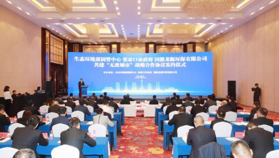 在與會領導的見證下,生態環境部固管中心、張家口市與龍源環保簽署了共建“無廢城市”戰略合作協議。