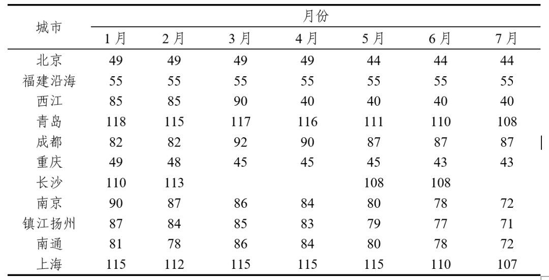 2023年1-7月部分代表性地區(qū)機(jī)制砂價(jià)格