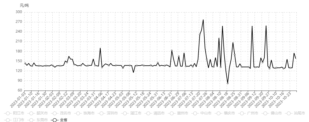 2023年1月-10月大灣區(qū)中砂價(jià)格走勢(shì)