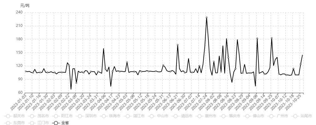 2023年1月-10月大灣區(qū)碎石價(jià)格走勢(shì)