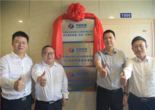 砂石骨料銷售(華東)分中心、長九公司和長崍公司長三角區域(南通)辦事處(以下簡稱“一分中心、兩辦事處”)正式揭牌成立。中國水電八局投資運營事業部黨總支書記/總經理、長九公司黨委書記/董事長、長崍公司董事長龔玉鳳,投資運營事業部副總經理(正職級)、長九公司黨委副書記/總經理劉孟輝,投資運營事業部副總經理宋丹以及銷售中心、長九公司和長崍公司相關人員參加揭牌儀式。