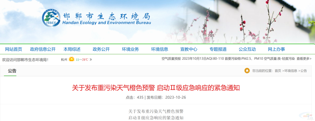 邯鄲市10月27日12時(shí)起啟動(dòng)Ⅱ級(jí)應(yīng)急響應(yīng),要求工業(yè)企業(yè)合理調(diào)控生產(chǎn)計(jì)劃,在確保安全生產(chǎn)的前提下,按照《邯鄲市2023-2024年重污染天氣應(yīng)急減排工業(yè)源清單(報(bào)批版)》橙色預(yù)警(Ⅱ級(jí))差異化減排措施安全有序執(zhí)行到位。績(jī)效分級(jí)A級(jí)和引領(lǐng)性企業(yè)、納入生態(tài)環(huán)境“白名單”企業(yè),在確保污染防治設(shè)施有效運(yùn)行、污染物達(dá)標(biāo)排放的情況下,自主采取應(yīng)急減排措施,嚴(yán)禁“一刀切”。