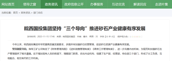 安徽皖西國投集團表示,接下來在砂石業務上將堅持制度導向、市場導向以及市場導向,牢牢把握高質量發展要求,多措并舉加強砂石經營管理,促進砂石資源產業健康有序發展。