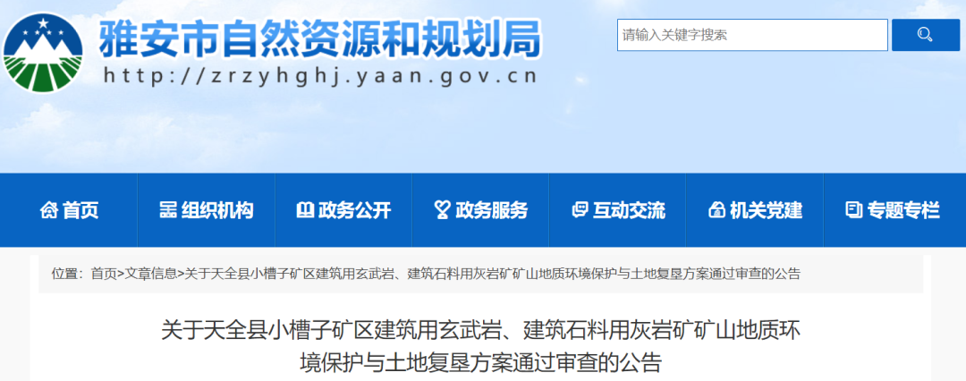 近日,四川雅安市自然資源局通過天全縣小槽子礦區建筑用玄武巖、建筑石料用灰巖礦礦山地質環境保護與土地復墾方案。