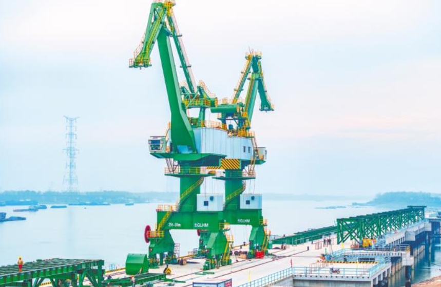 11月22日,黃石市砂石集并中心黃顙口港區(qū)項(xiàng)目建設(shè)現(xiàn)場,工人正在安裝門式起重機(jī)。該項(xiàng)目總投資9.06億元,是長江大保護(hù)省級重點(diǎn)工程,新建6個(gè)5000噸級散貨泊位,設(shè)計(jì)年吞吐量為2780萬噸,項(xiàng)目建成對保護(hù)長江岸線安全、加強(qiáng)岸線資源集約高效利用具有重要意義。目前,項(xiàng)目水域工程完成了碼頭泊位主體結(jié)構(gòu)施工,陸域施工正有序進(jìn)行。
