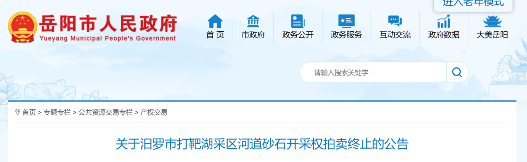 近日,湖南岳陽市人民政府發布汨羅市打靶湖采區河道砂石開采權拍賣終止的公告。據了解,該項目規劃期采砂控制總量3480萬噸,開采期限2023-2027年,起拍價12.2287億元(35.14元/噸)。
