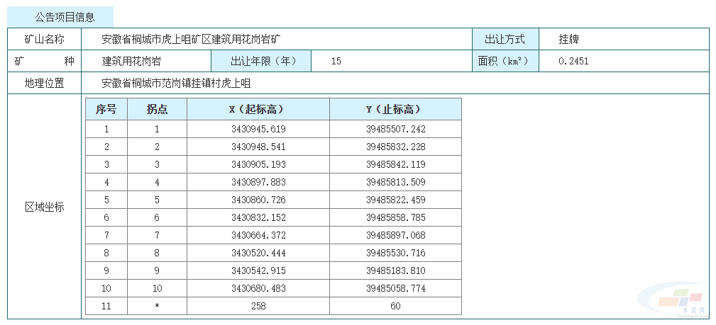 12月5日,桐城市公共資源交易中心與桐城市自然資源和規劃局聯合發布公告,掛牌出讓安徽省桐城市虎上咀礦區建筑用花崗巖礦采礦權,擬出讓15年,起始價2.16億元。