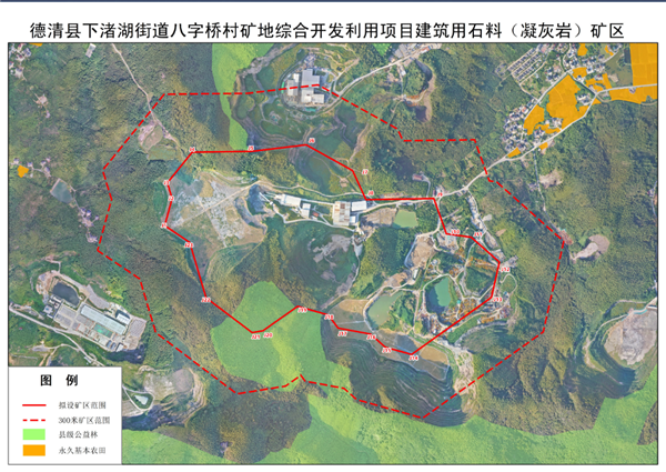 根據公告,本次出讓的沈曹礦區位于德清縣下渚湖街道八字橋村,礦區面積約1.1826平方千米。礦區范圍內共計出讓資源量12257.78萬噸,其中建筑用石料(凝灰巖)控制資源量12171.69萬噸、宕碴控制資源量86.09萬噸,剝離量490.22萬立方米。礦山在正式投產6個月內完成智能化綠色礦山建設和相關工作。本采礦權到期后可申請延續,延續最長時間不超過6年。