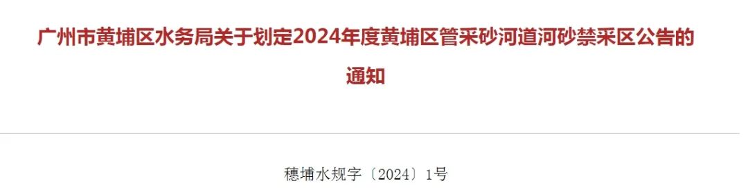 現將《廣州市黃埔區水務局關于劃定2024年度黃埔區管采砂河道河砂禁采區的公告》印發給你們,請遵照執行。