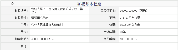 近日,四川雅安市自然資源和規劃局發布滎經縣塔子山建筑用玄武巖礦采礦權拍賣出讓公告(第二次)。該礦權資源儲量:5503.3萬立方米(近1.7億噸),開采規模:不低于100萬噸/年(以實際頒證為準)。擬出讓年限:10年,起始價:48000萬元。