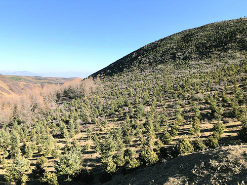 駕駛車輛進入大通縣景陽鎮中嶺村廢棄礦山,遠遠望去,曾經的廢棄礦山已是樹木成林,祁連圓柏像站崗的哨兵整齊排列在山間。