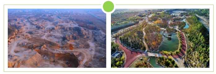 最典型的案例是,源石酒莊對6000畝采空區進行治理,投入近7億元,改造利用3個大型采砂坑,依托礦坑高低復合地勢建造酒莊、引水成湖、打造園區。在其中的一座采砂坑上,企業與政府攜手建起了占地1200余畝、免費開放的休閑運動公園,另一座采砂坑被打造成占地2200畝的生態園林酒莊,第三個采砂坑持續恢復生態環境,正在修建占地2600畝的北大湖康養區。戈壁荒灘上還打造了3000畝葡萄種植基地,建成了數千畝生態林,風沙肆虐的砂石灘、廢礦坑變成生機盎然的金沙灘、綠洲地。