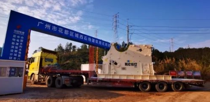 1月14日,一臺裝載嶄新設備的卡車緩緩駛入花都項目施工現場,這是花都項目砂石工廠首臺進場設備——顎式破碎機MJC1612。